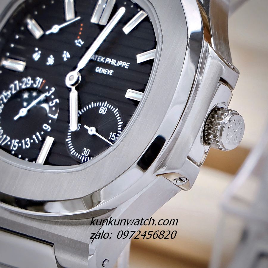 Đồng Hồ Nam Patek Philippe Nautilus Automatic 5 Kim 2 Lịch Silver Mặt Đen 40mm