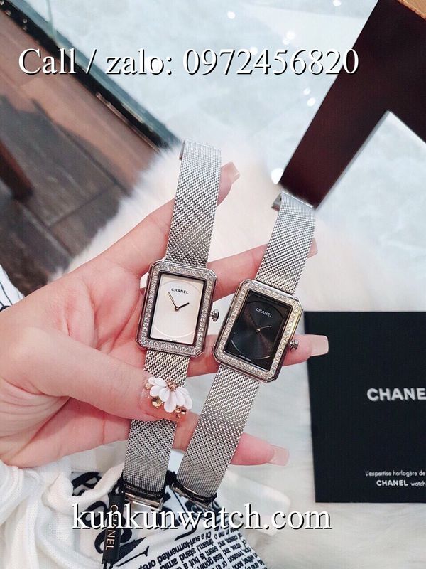 Đồng Hồ Nữ CHANEL CNNT012 - mặt số chữ nhật case 28,6 x 37mm, được đính viền hạt - 2 kim chỉ giờ và phút - dây đeo dạng lưới ôm tay, sang trọng.