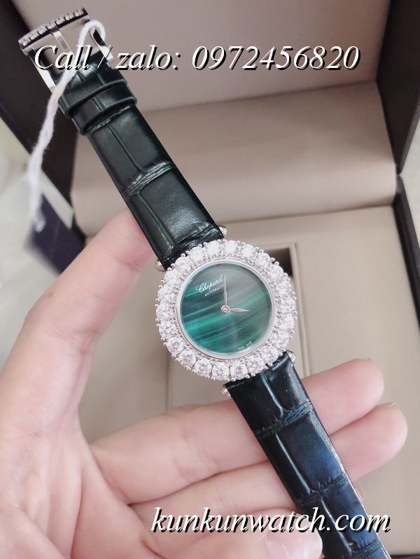 Đồng Hồ Nữ Chopard CPND066 có mặt số tròn 32mm được đính hạt chấu quanh viền - 2 kim chỉ giờ và phút - Dây đeo chất liệu da mềm mại - vẻ đẹp đơn giản, sang trọng cho phái nữ.