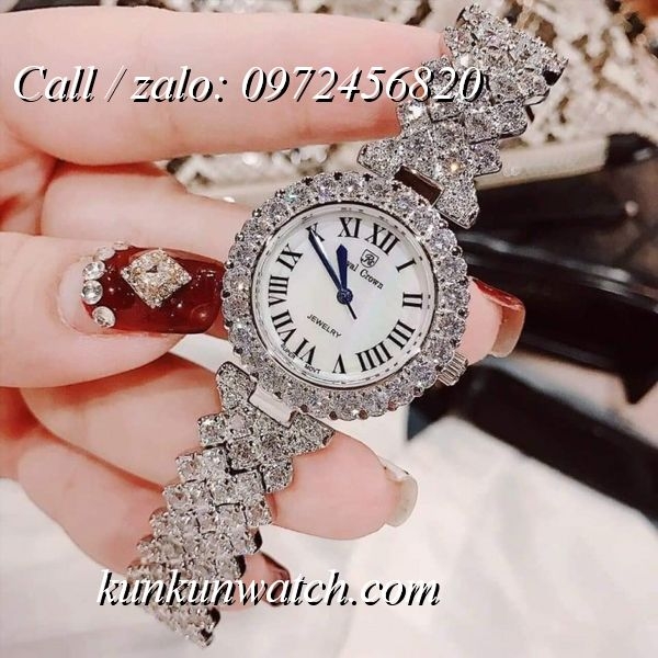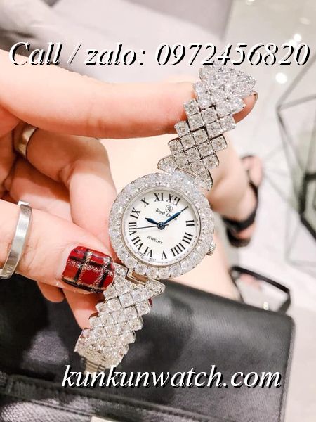 Đồng Hồ Nữ Royal Crown 6305 - sử dụng số la mã chỉ giờ - 3 kim chạy màu xanh nổi bật - vỏ và dây full hạt nữ tính, sang trọng.
