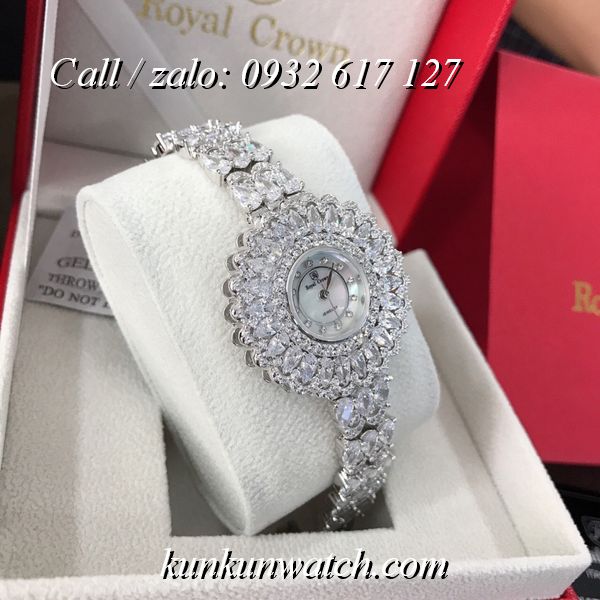 Đồng Hồ Nữ Royal Crown 6804 - mặt số hoa tuyết - vỏ và dây full hạt nữ tính, sang trọng.