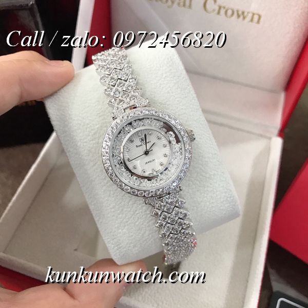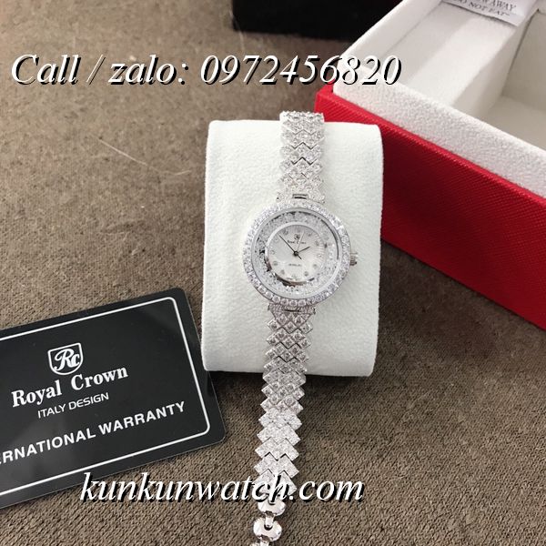 Đồng Hồ Nữ Royal Crown 2606L thiết kế mặt số case 29mm có đá chuyển động theo tay - vỏ và dây full hạt nữ tính, sang trọng.