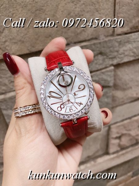 Đồng Hồ Nữ Royal Crown 3850 đính đá swarovski quanh viền mặt số và tại vị trí 12H nổi bật và cá tính - các số chỉ giờ được cách điệu - núm chỉnh giờ lệch phía dưới phá cách.
