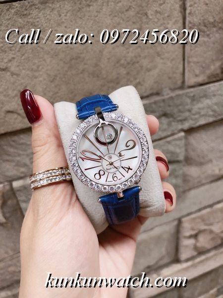 Đồng Hồ Nữ Royal Crown 3850 đính đá swarovski quanh viền mặt số và tại vị trí 12H nổi bật và cá tính - các số chỉ giờ được cách điệu - núm chỉnh giờ lệch phía dưới phá cách.