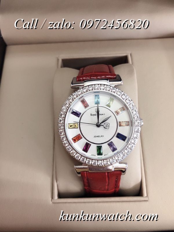 Đồng Hồ Nữ Royal Crown 4606 - Dây Da Đỏ - 36mm