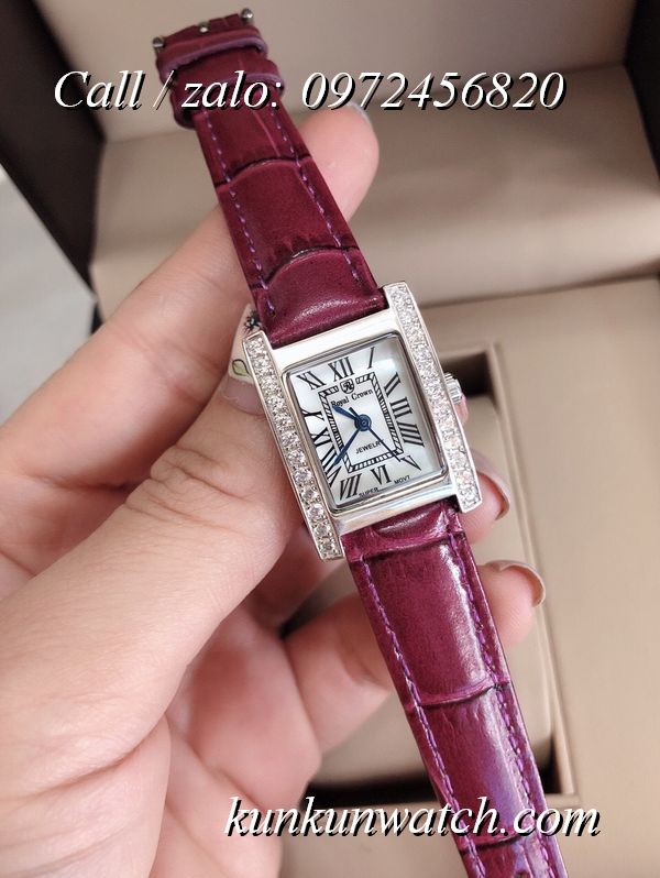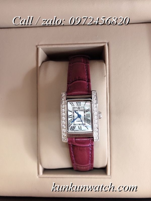Đồng Hồ Nữ Royal Crown 6306 - Dây Da Đỏ Tía - 28mm
