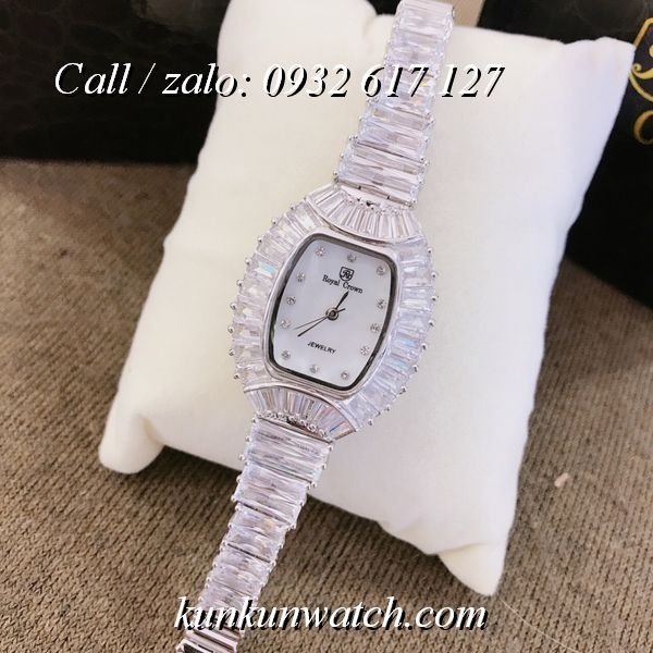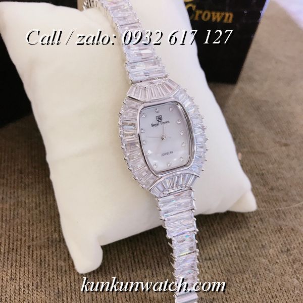 Đồng Hồ Nữ Royal Crown 223 - mặt số hình ovan ấn tượng - vỏ và dây full hạt nữ tính, sang trọng.