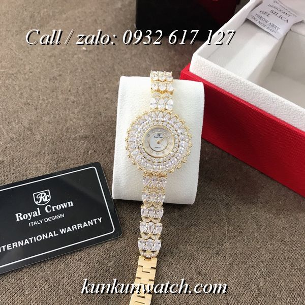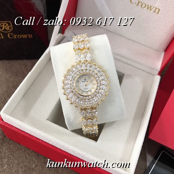 Đồng Hồ Nữ Royal Crown 6804 - mặt số hoa tuyết - vỏ và dây full hạt nữ tính, sang trọng.