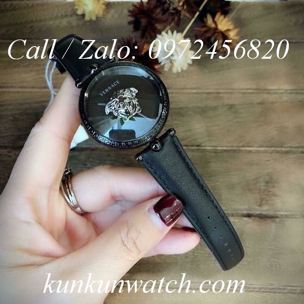 Kích thước mặt: 39mm viền cách điệu hoa văn đặc trưng của Versace