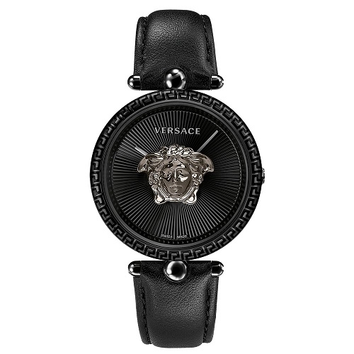 Đồng Hồ Nữ Versace Palazzo Empire có thiết kế độc đáo với logo Medusa to ngay vị trí trung tâm mặt số cùng tên thương hiệu trên nền mặt số tia, 2 kim chạy