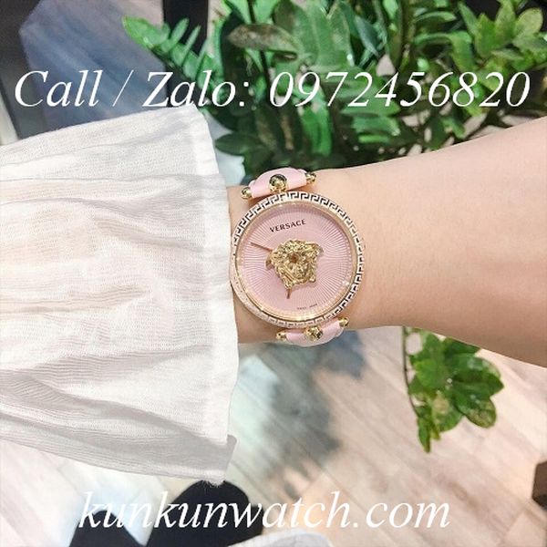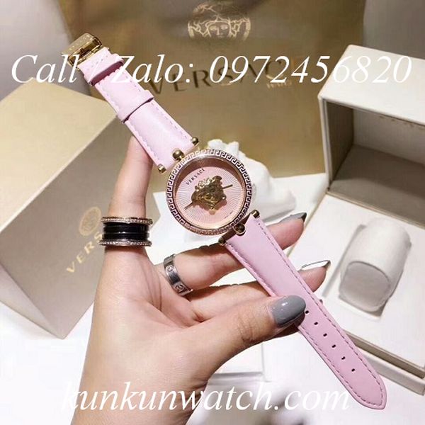 Kích thước mặt: 39mm viền cách điệu hoa văn đặc trưng của Versace