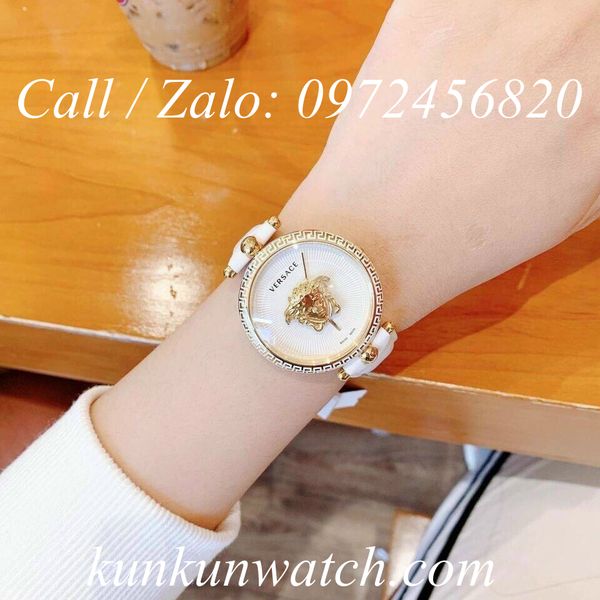Kích thước mặt: 39mm viền cách điệu hoa văn đặc trưng của Versace
