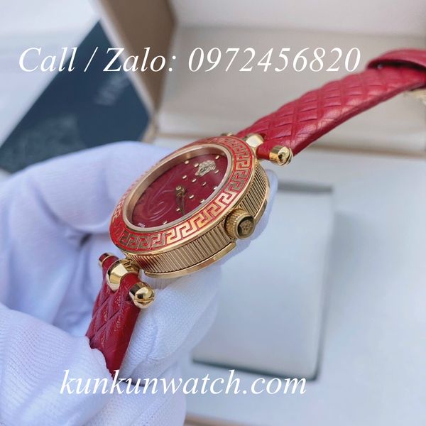 Đồng Hồ Nữ Versace Vanitas Mini thiết kế nền mặt số họa tiết phá cách cùng biểu tượng medusa thu hút, 2 kim chạy