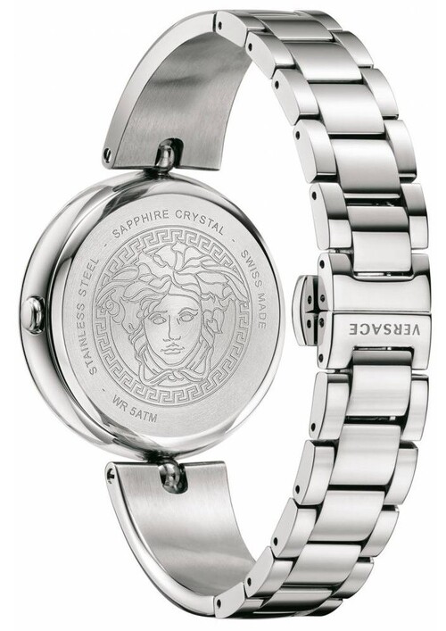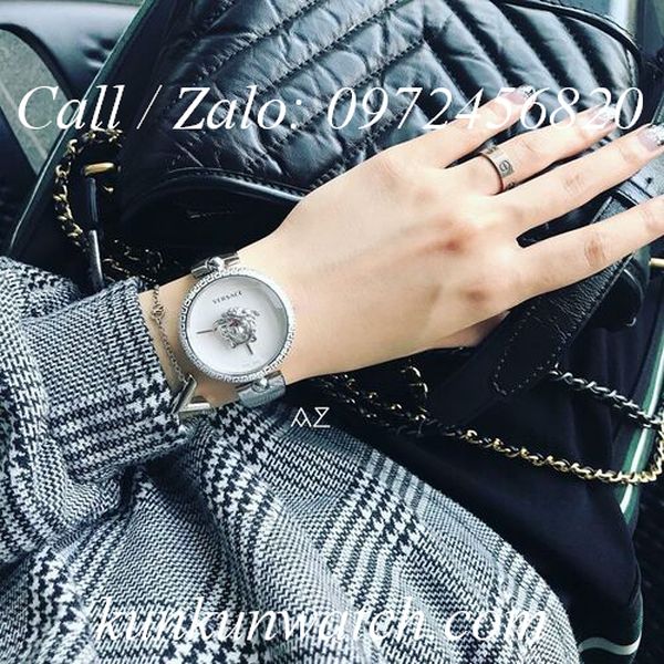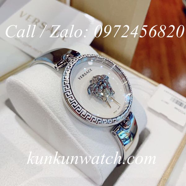 Kích thước mặt: 39mm viền cách điệu hoa văn đặc trưng của Versace