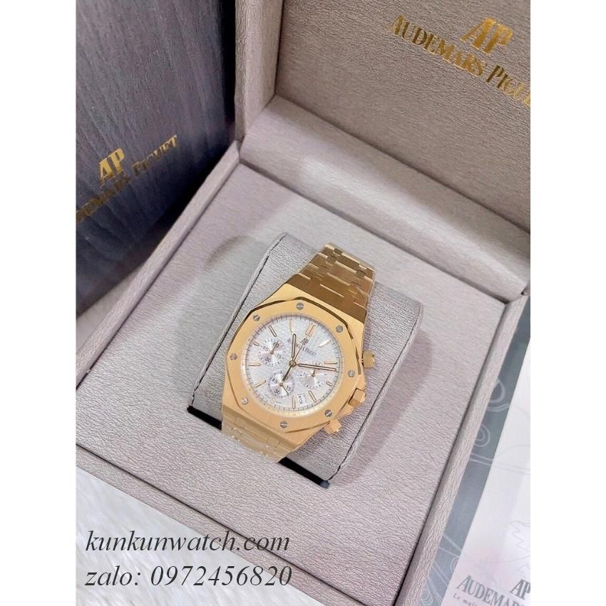 Đồng Hồ Nam Audemars Piguet Royal Oak Chronograph - Quartz - Vàng Mặt Trắng - 41mm