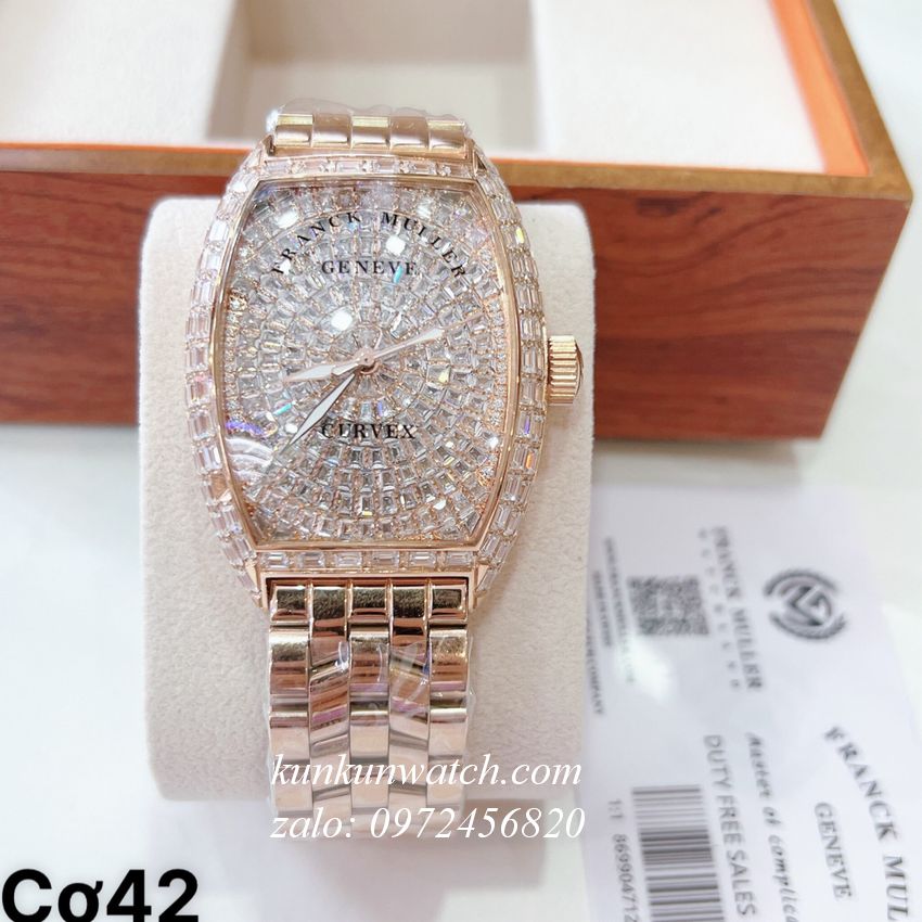 Đồng Hồ Nam Franck Muller Automatic Đính Full Pha Lê Vàng Hồng 42mm