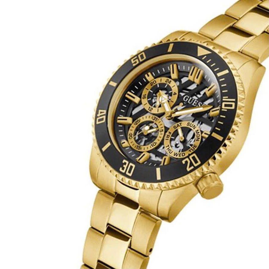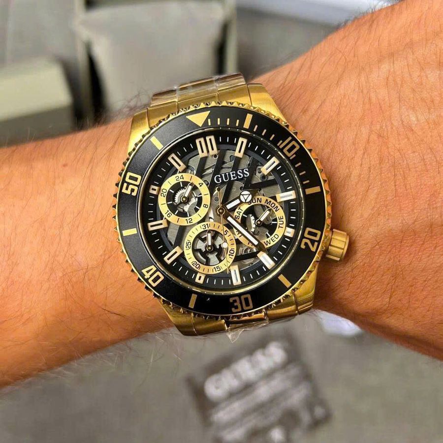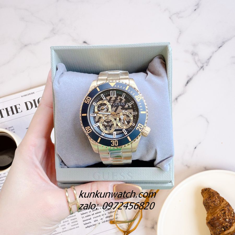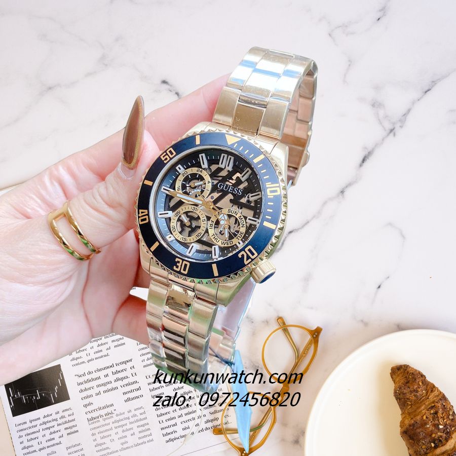 ◾ Đồng Hồ Nam Guess Axle GW0488G2 có vỏ răng cưa, đánh dấu phút vành ngoài kết hợp nền mặt số lộ máy mạnh mẽ, nam tính. Núm chỉnh giờ phá cách