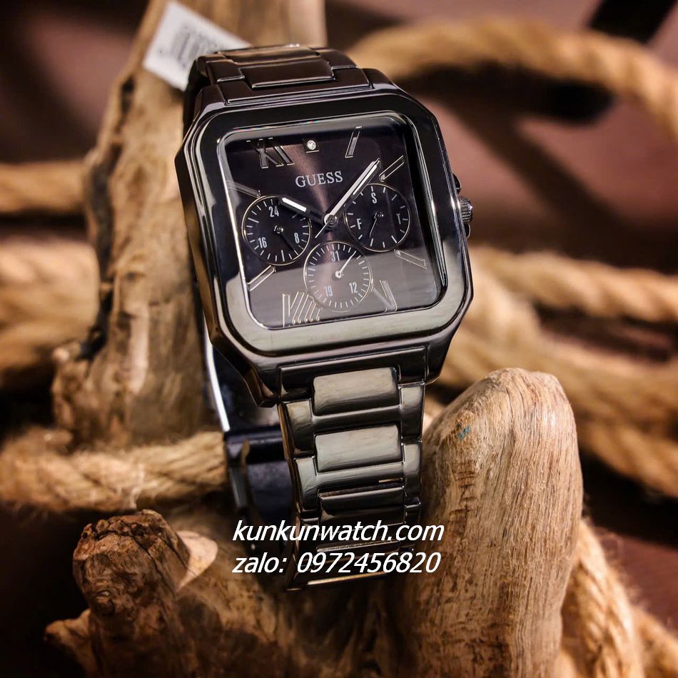 ◾ Đồng Hồ Nam Guess GW0631G2 thiết kế mặt số vuông tông đen cực nam tính. Điểm số la mã mốc 5H - 7H - 11H phá cách