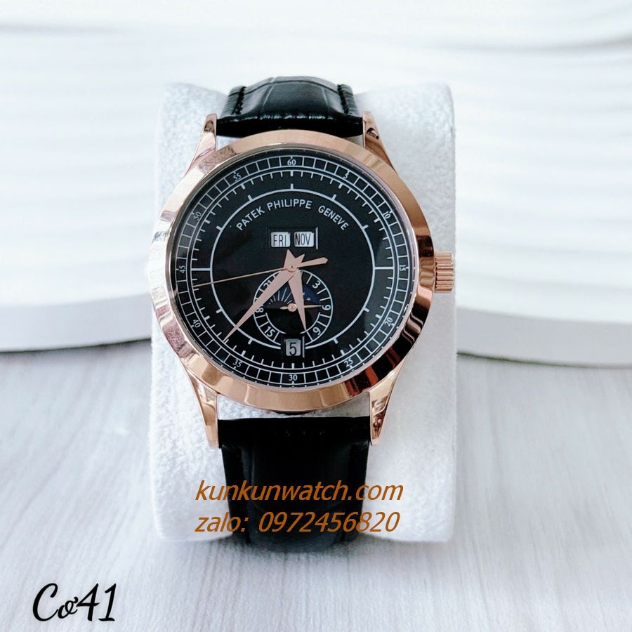 Đồng Hồ Nam Patek Philippe Automatic Đánh Dấu Phút, 4 Lịch Dây Da Đen Demi 41mm