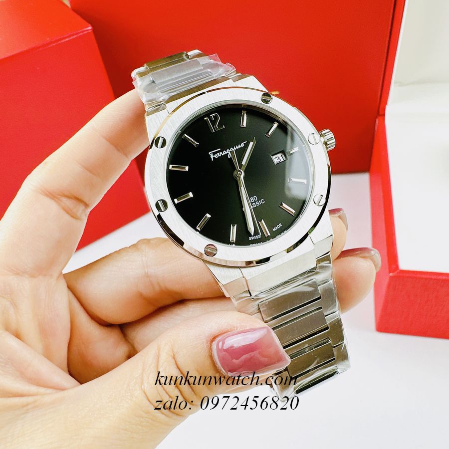 Đồng Hồ Nam Salvatore Ferragamo F80 Classic Bạc Mặt Đen 41mm