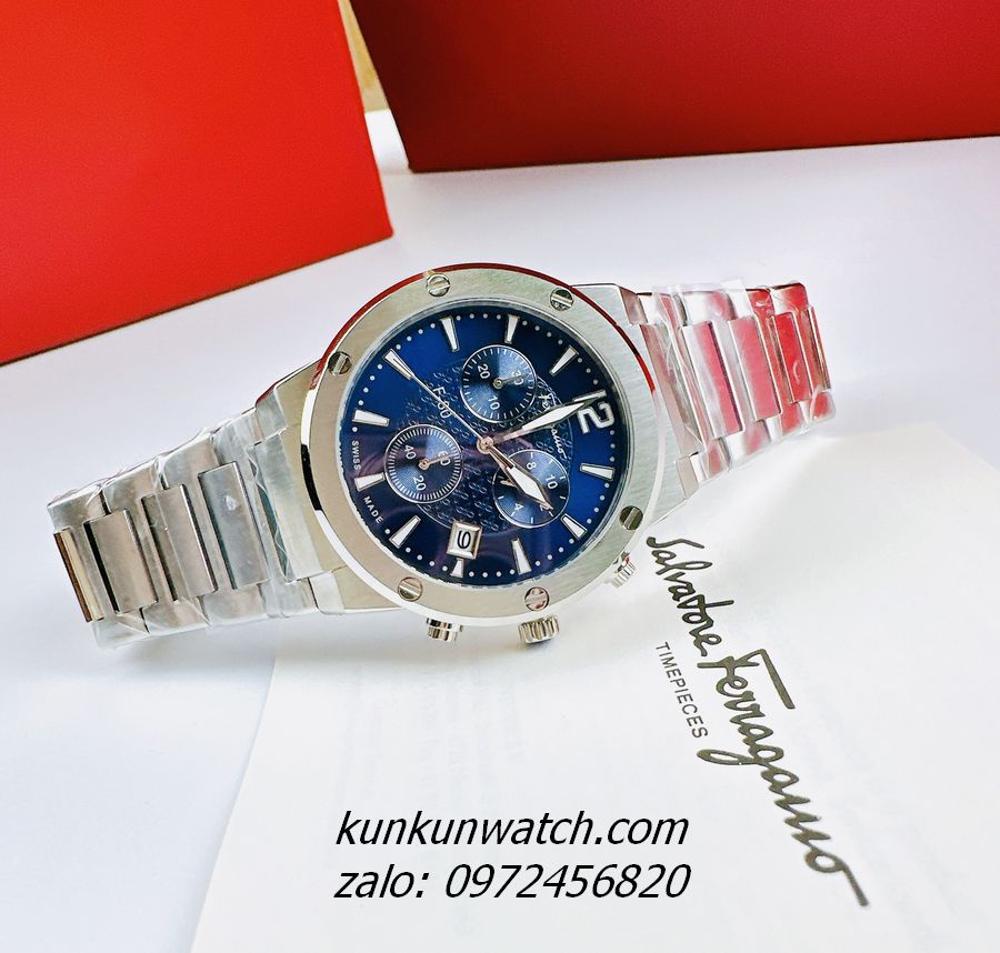 Đồng Hồ Nam Salvatore Ferragamo F80 Classic Chronograph Bạc Mặt Xanh 44mm