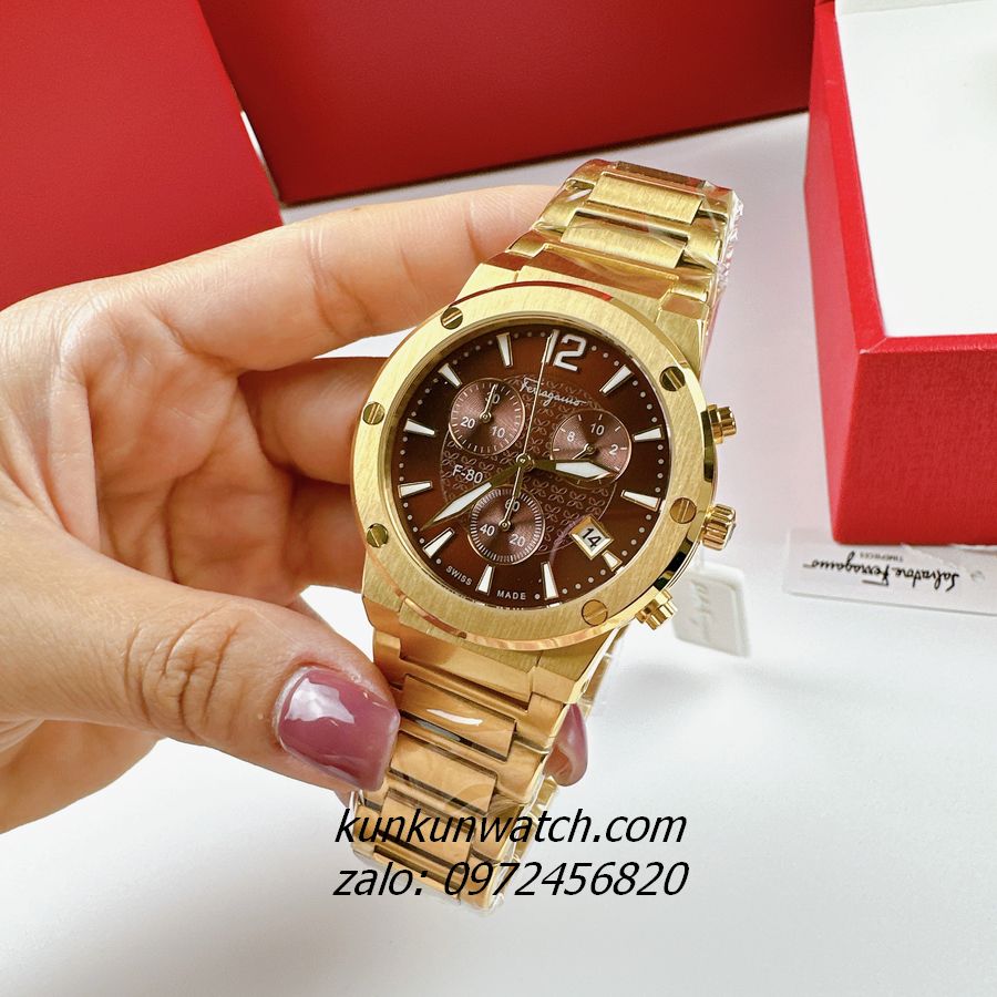 Đồng Hồ Nam Salvatore Ferragamo F80 Classic Chronograph Vàng Mặt Nâu 44mm