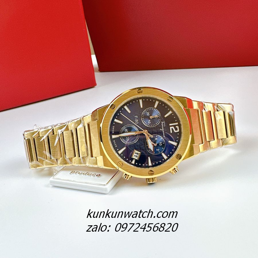 Đồng Hồ Nam Salvatore Ferragamo F80 Classic Chronograph Vàng Mặt Xanh 44mm