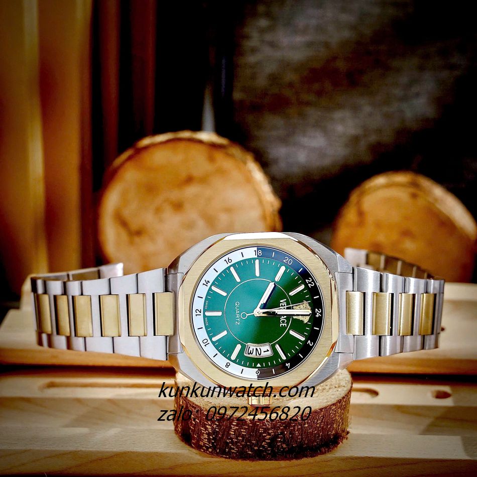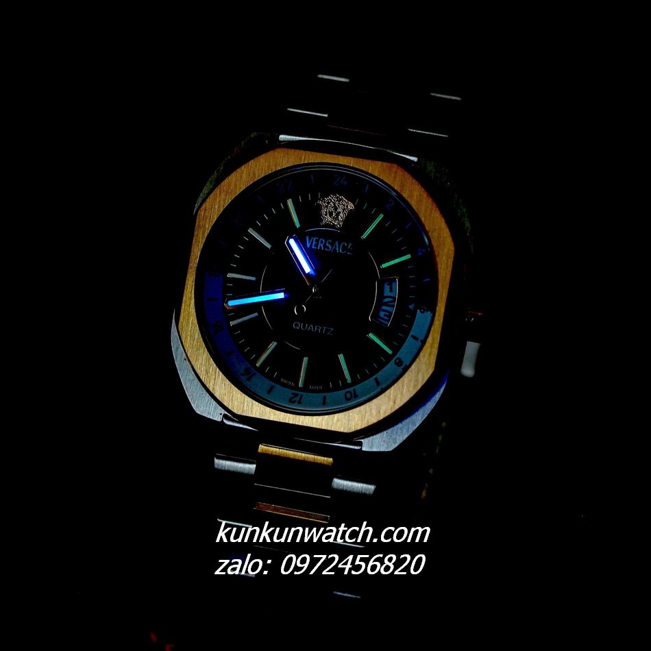 Đồng Hồ Nam Versace V-Contempo thiết kế mặt số vuông bo tròn độc đáo, ấn tượng. Lịch ngày phá cách. Điểm số 24 giờ, logo medusa mốc 12 giờ. 3 kim hoạt động