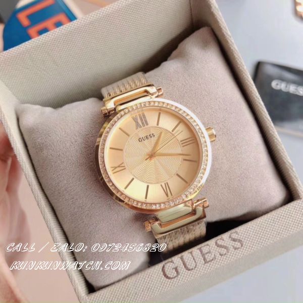 ✔️ Đồng Hồ Nữ Guess W0638L2 được đính viền pha lê, tạo điểm nhấn bằng số la mã tại các mốc 3H - 6H - 9H -12H cổ điển