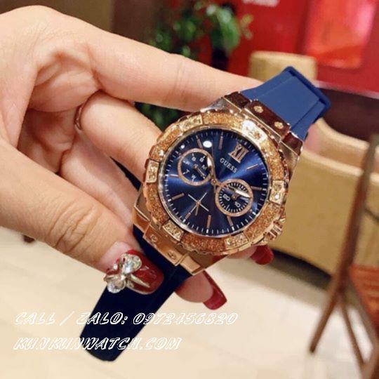 ✔️ Đồng Hồ Nữ Guess W1053L1 đính viền pha lê phá cách, 2 mặt số phụ thể hiện lịch thứ ngày, kiểu dáng hulot cá tính