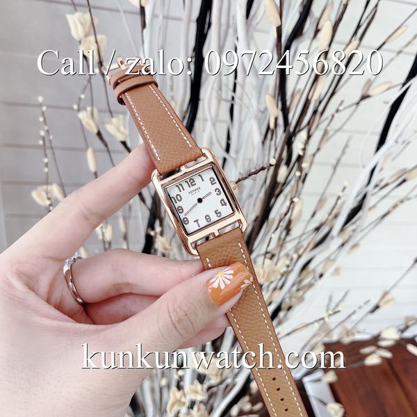 Đồng Hồ Nữ Hermes Cape Cod HMND063 - mặt số vuông 23mm phù hợp cổ tay nhỏ - 2 kim chạy chỉ giờ và phút - dây đeo chất liệu da bê cao cấp.