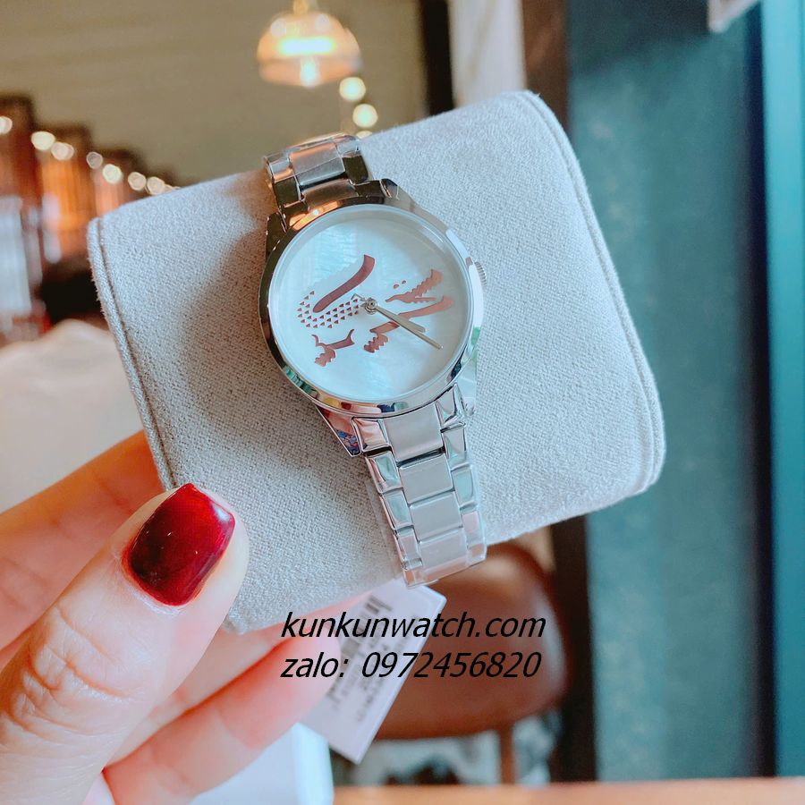 ✔️ Đồng Hồ Nữ Lacoste họa tiết cá sấu nổi bật nên trền mặt số xà cừ, 3 kim hoạt động