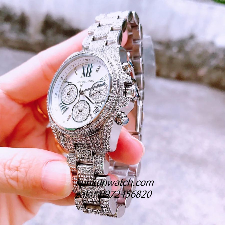 ◾ Đồng Hồ Nữ Michael Kors Bradshaw MK6454 thiết kế đính full đá lấp lánh. Đính đá 3 mặt số phụ, 6 kim chạy. Điểm số la mã các mốc giờ chẵn