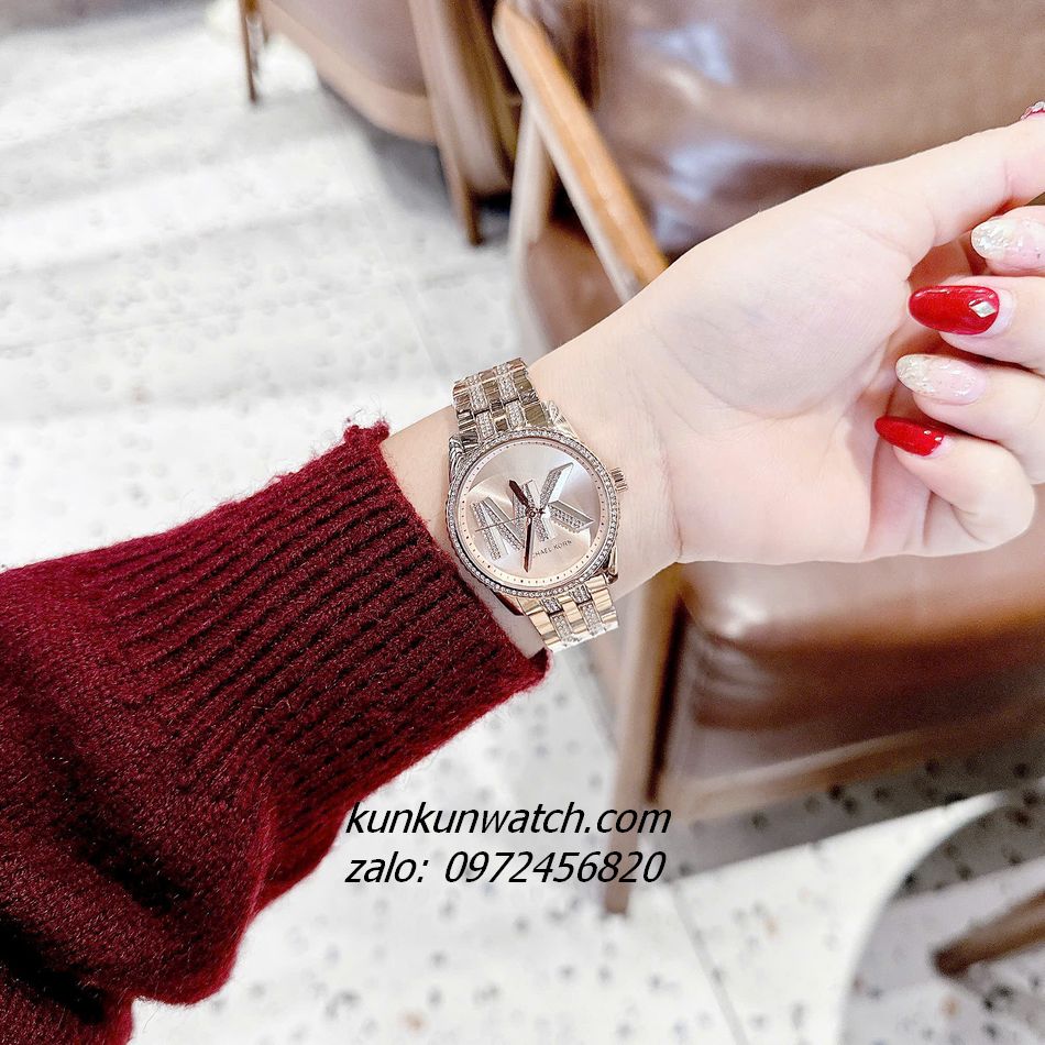 ◾ Đồng Hồ Nữ Michael Kors Bryant MK7541 có mặt số viền răng cưa phối đính đá ấn tượng. Nền mặt số họa tiết MK đính pha lê phá cách, 3 kim hoạt động. Dây đeo thép không rỉ đính đá dọc thân dây lấp lánh.