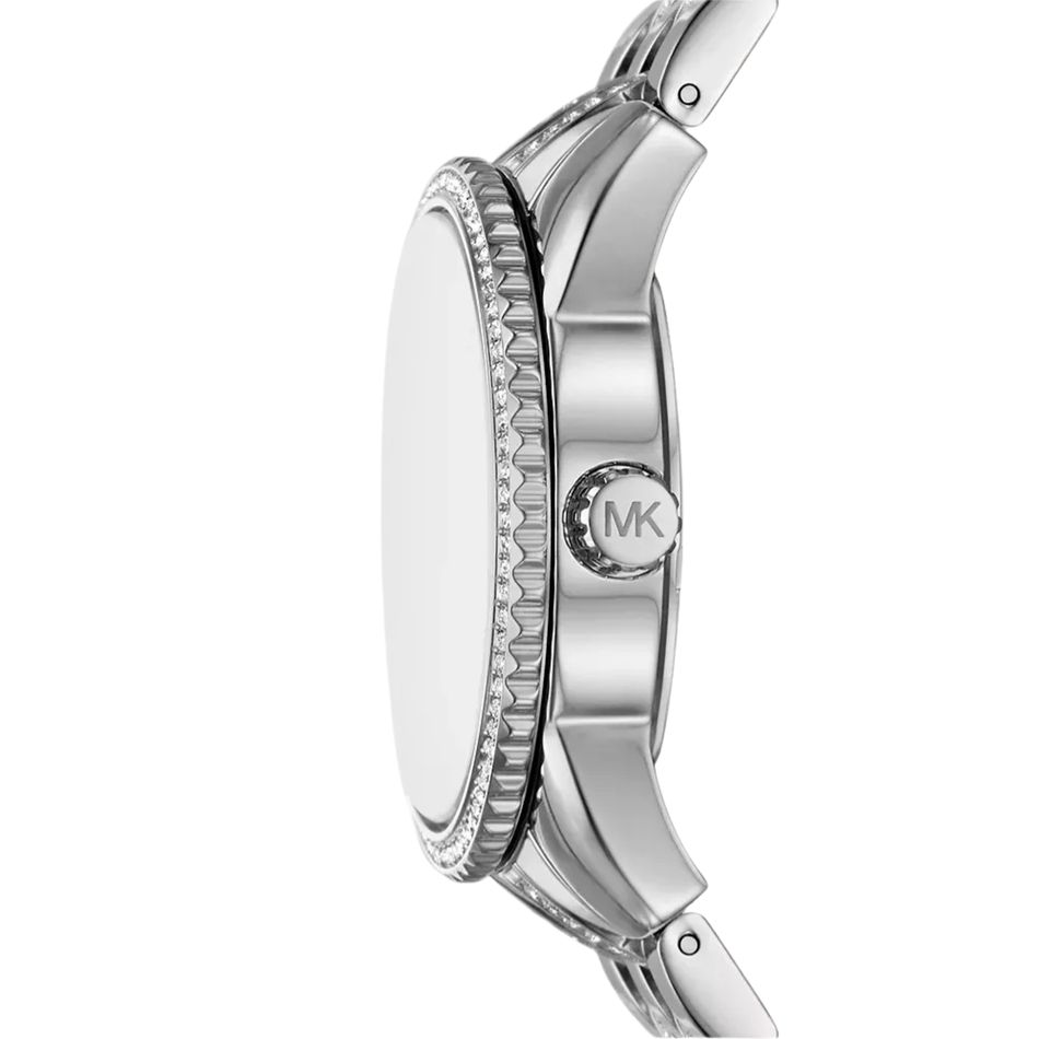 ◾ Đồng Hồ Nữ Michael Kors Bryant MK7542 có mặt số viền răng cưa phối đính đá ấn tượng. Nền mặt số họa tiết MK đính pha lê phá cách, 3 kim hoạt động. Dây đeo thép không rỉ đính đá dọc thân dây lấp lánh.