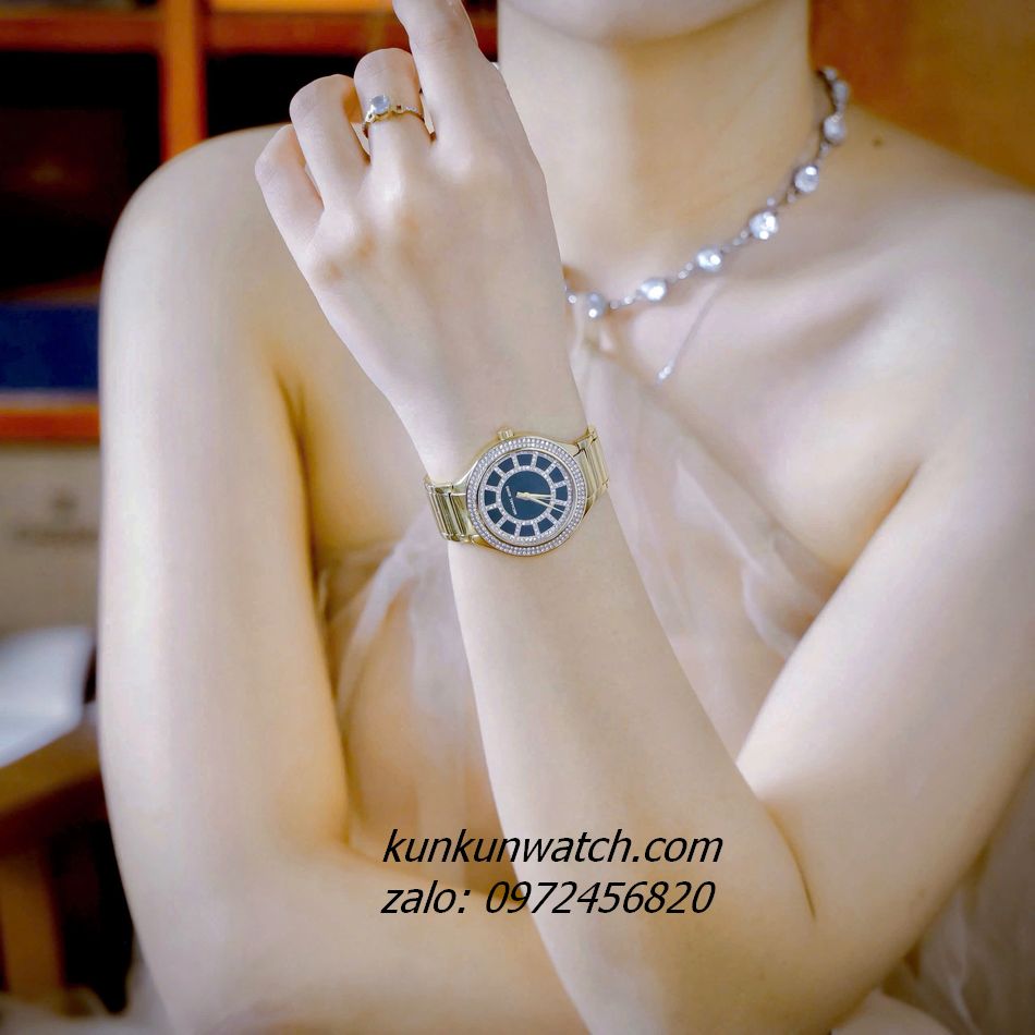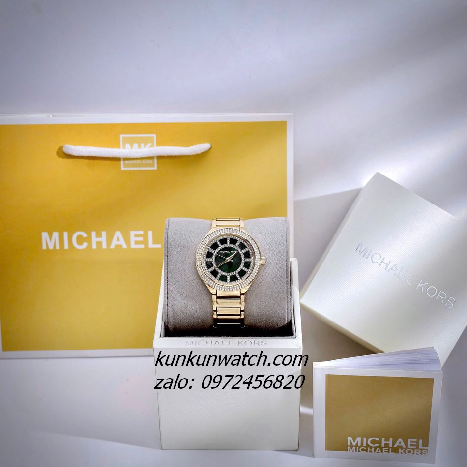 ◾ Đồng Hồ Nữ Michael Kors Kerry MK3409 cực sang trọng với nền mặt xà cừ phối đính đá. Điểm pha lê 12 cột mốc giờ, 3 kim hoạt động. Dây đeo thép không rỉ, khóa bấm