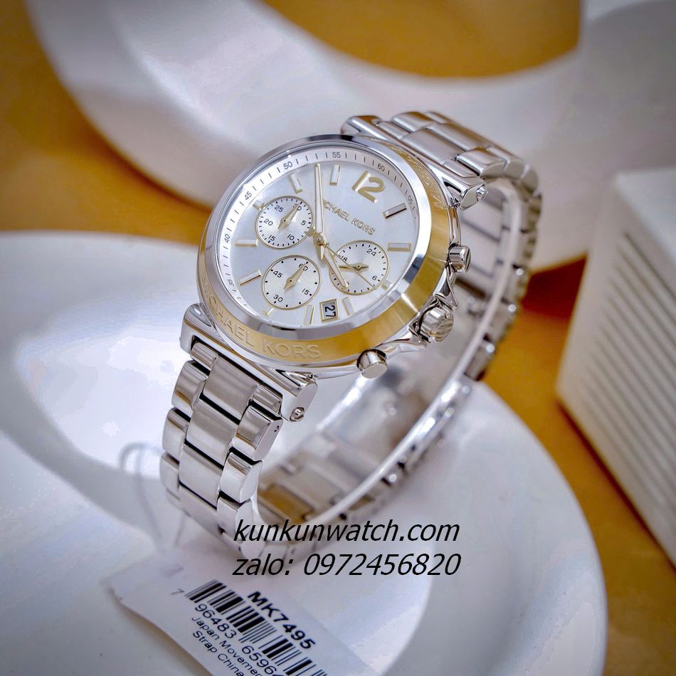 ◾ Chiếc Đồng Hồ Nữ Michael Kors Maren MK7495 với vỏ tông Demi viền khắc tên thương hiệu ấn tượng. Chế độ bấm giờ thể thao, 3 mặt số phụ, lịch ngày