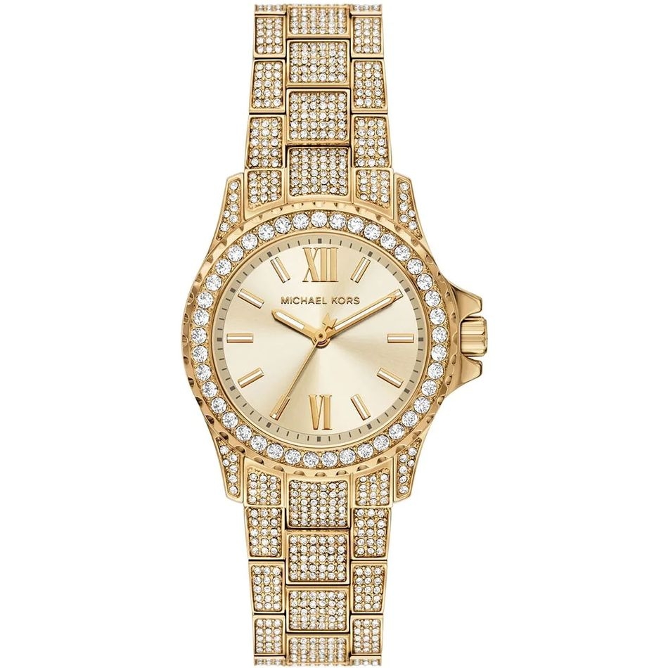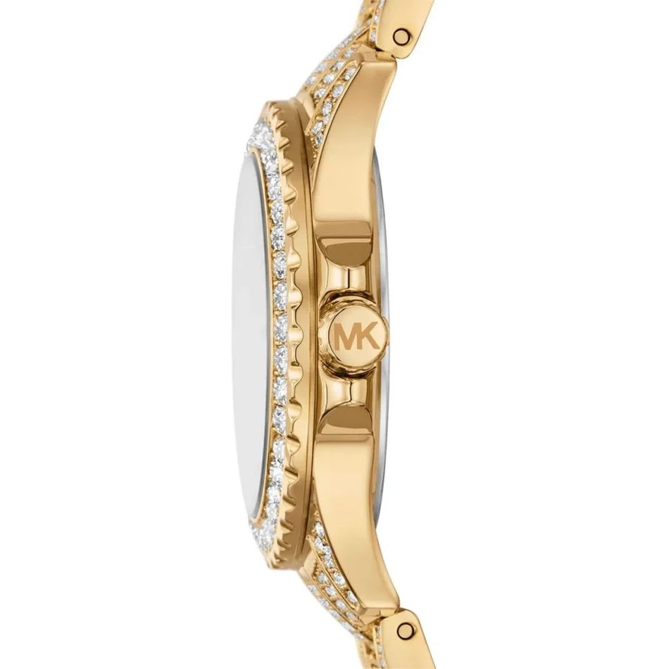 ◾ Đồng Hồ Nữ Michael Kors Mini Everest MKO1196 mặt số đính viền đá chấu chắn chắn, lấp lánh. Điểm số La mã 2 mốc giờ, điểm vạch 10 mốc giờ. Dây đeo thép không rỉ đính đá dọc thân dây thu hút