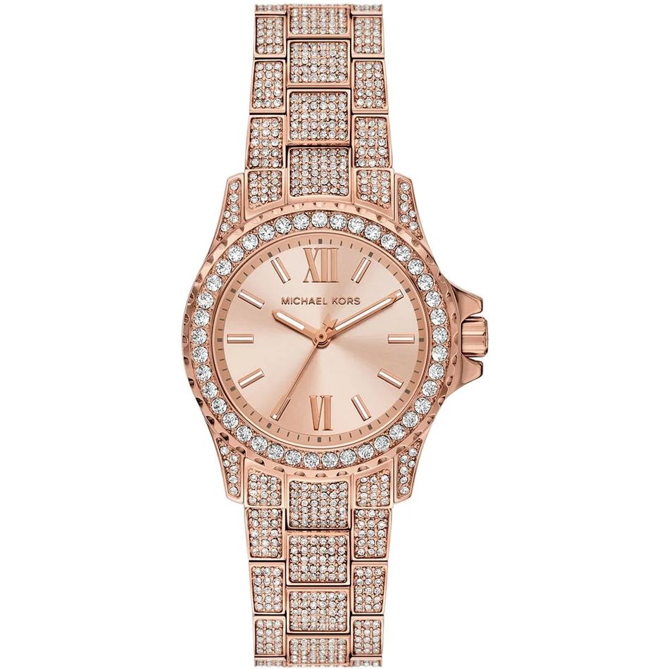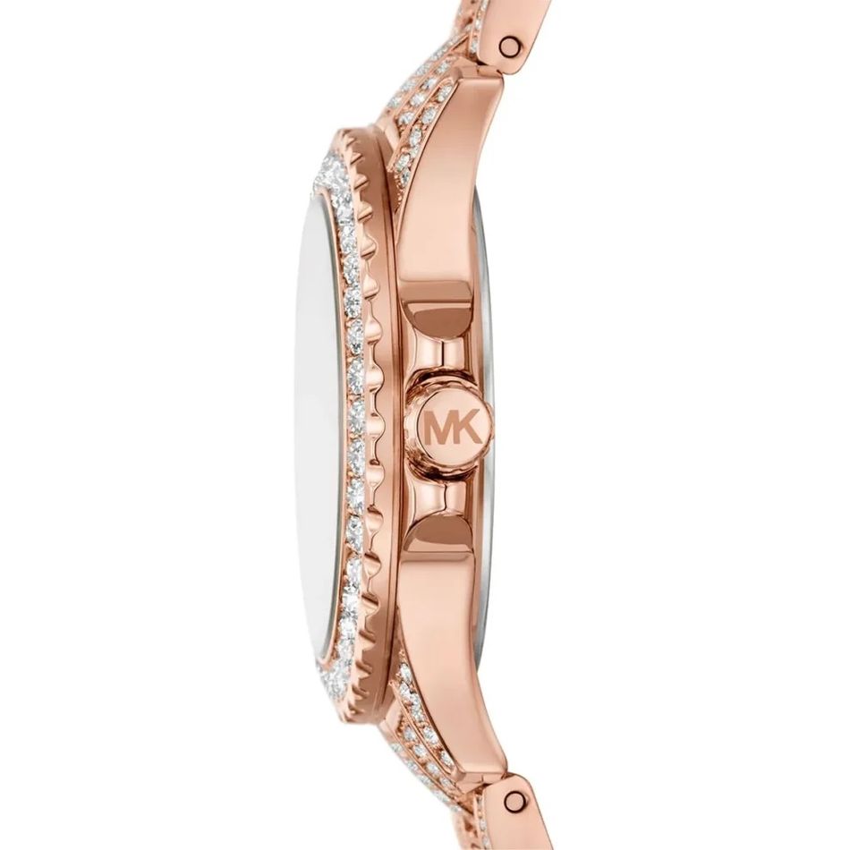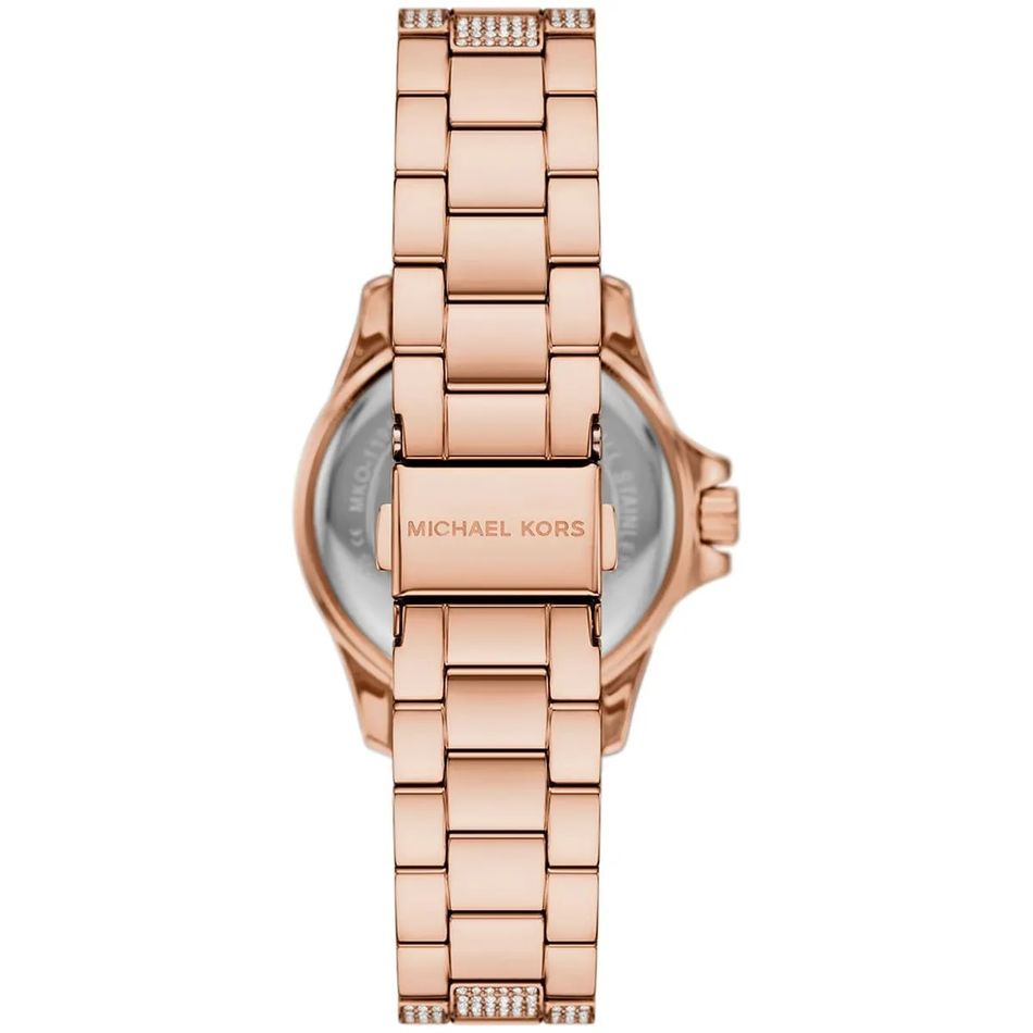 ◾ Đồng Hồ Nữ Michael Kors Mini Everest MKO1197 mặt số đính viền đá chấu chắn chắn, lấp lánh. Điểm số La mã 2 mốc giờ, điểm vạch 10 mốc giờ. Dây đeo thép không rỉ đính đá dọc thân dây thu hút