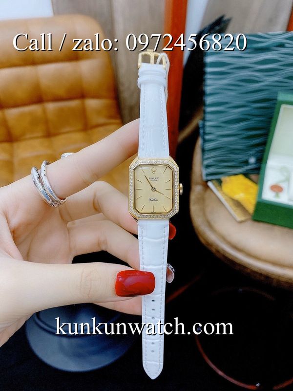 Đồng Hồ Nữ Rolex RLND035 - có mặt số chữ nhật được đính viền hạt - 2 kim chỉ giờ và phút - dây da sáng bóng sang trọng, cá tính.