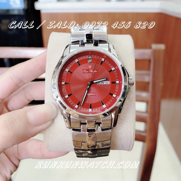 Đồng Hồ Nam Olym Pianus OP6377 - Dây Bạc Mặt Đỏ - 40mm