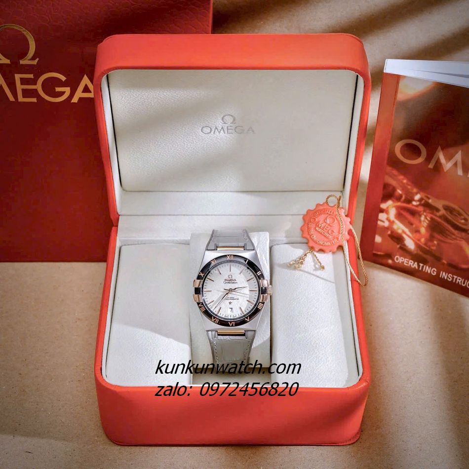 Đồng Hồ Nam Omega Constellation Automatic lộ cơ. Thiết kế mặt niềng số la mã nổi bật, nam tính. Lịch ngày mốc 6 giờ. Dây da vân đường chỉ may chắc chắn