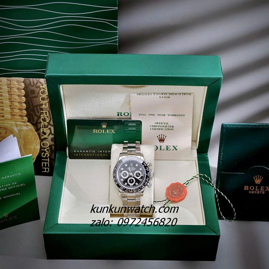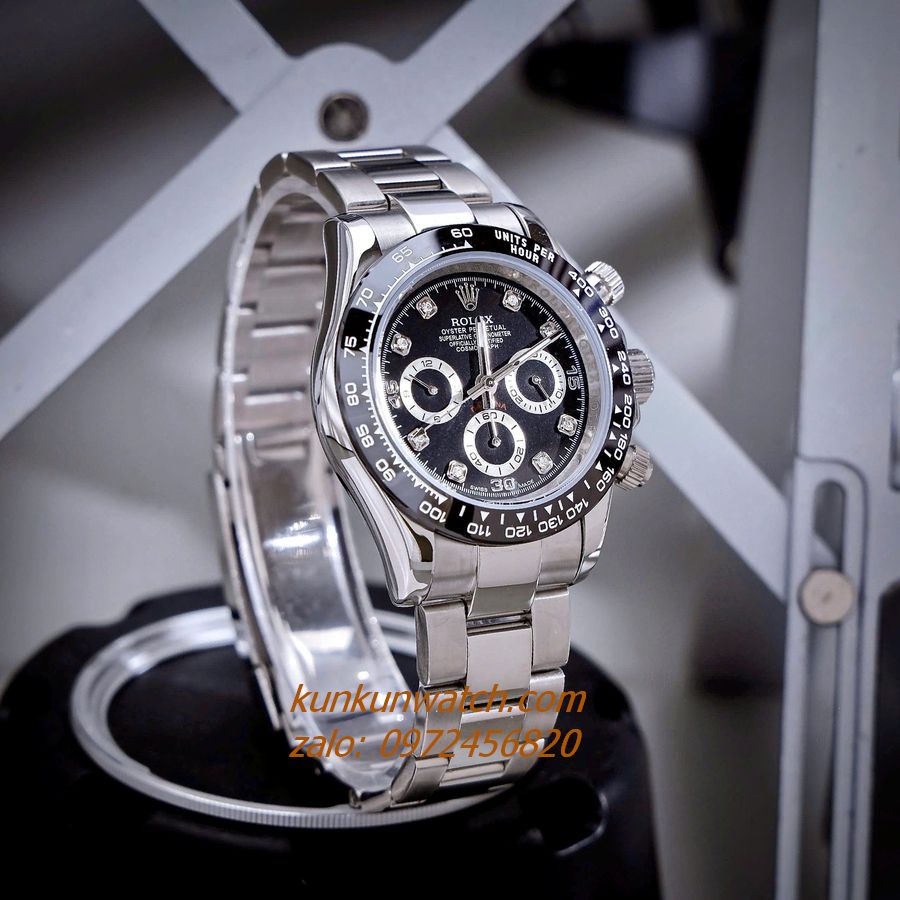 Đồng Hồ Nam Rolex Cosmograph Daytona Automatic 6 Kim Silver Mặt Đen 40mm