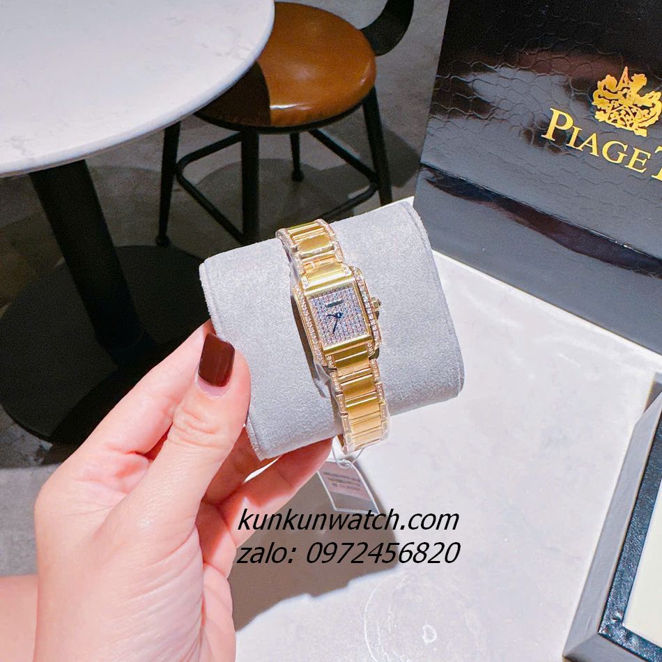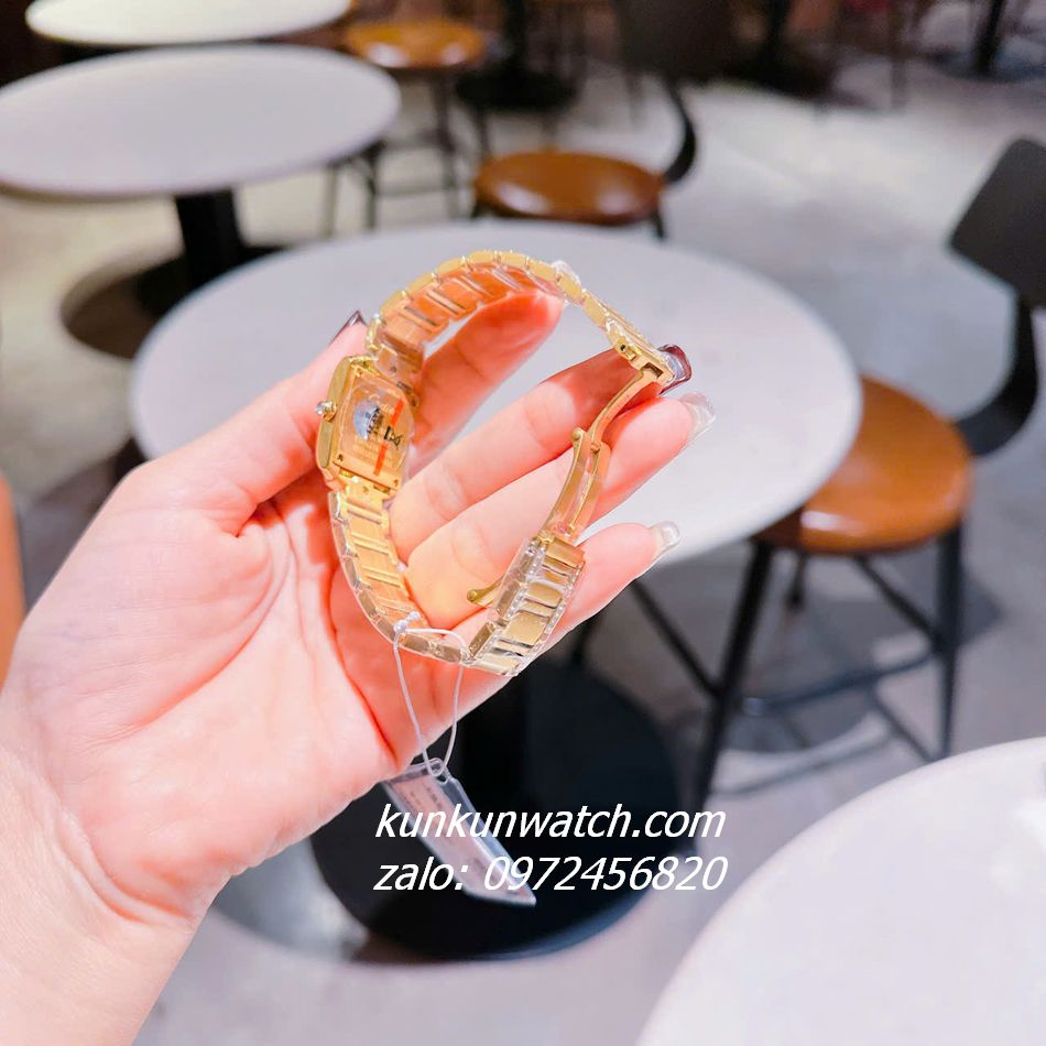 ↗️ Đồng Hồ Nữ Cartier mặt vuông, nền mặt đinh full đá siêu sáng, 2 kim hoạt động. Dây đeo thép không rỉ, đính đá dọc thân dây