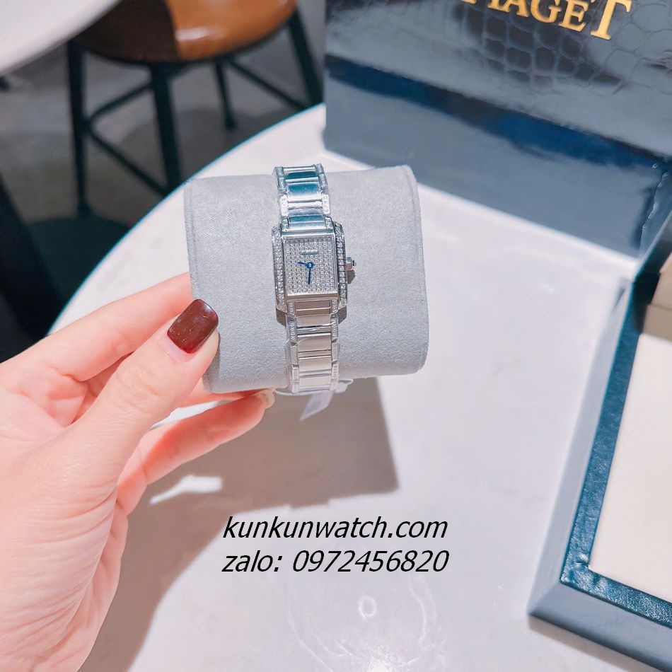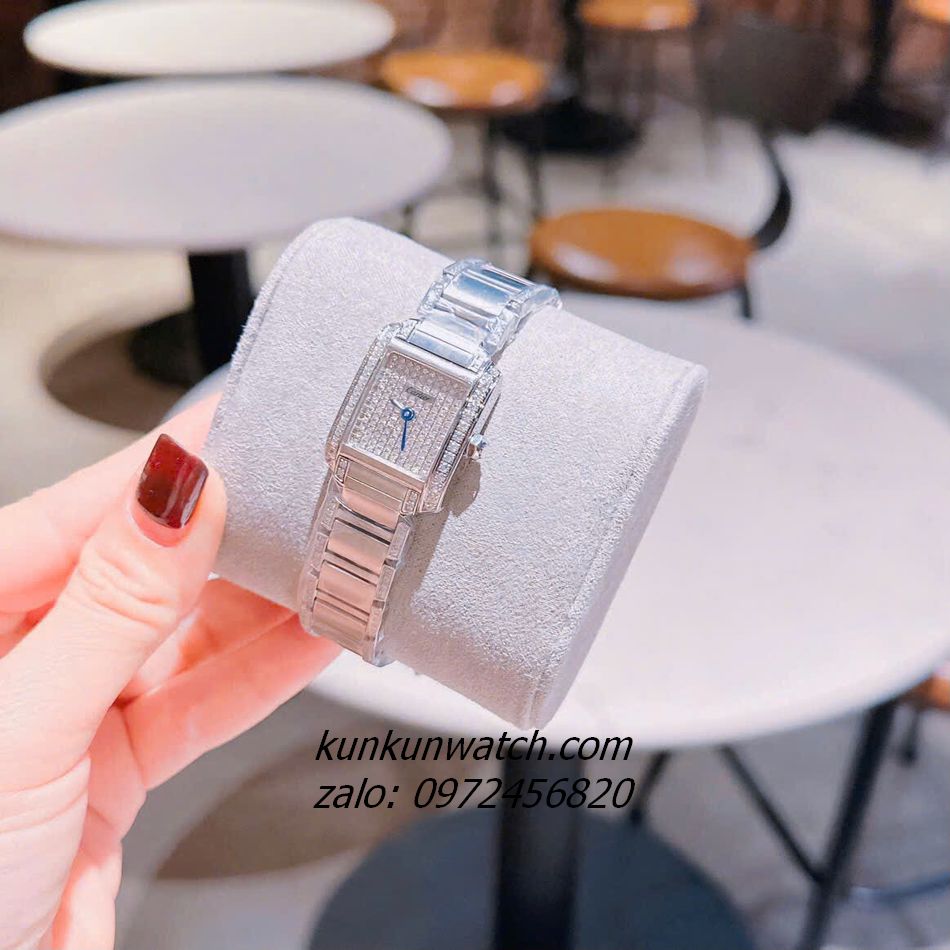 Đồng Hồ Nữ Cartier Tank Đính Đá Vỏ Silver Mặt Vuông 30mm