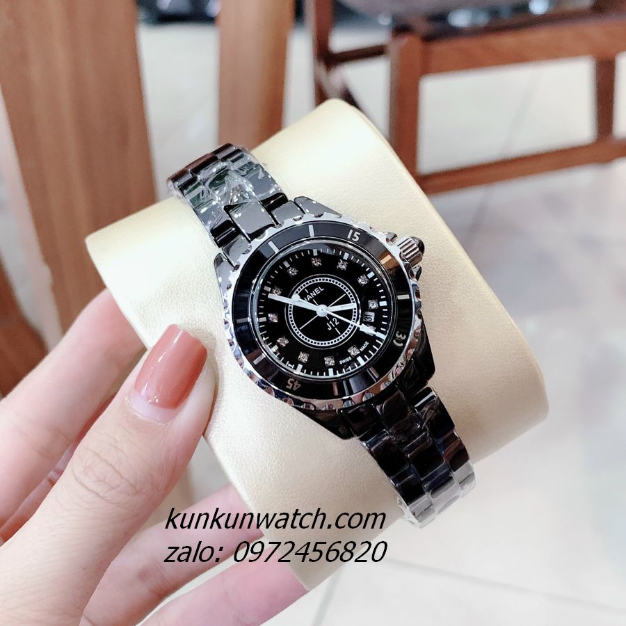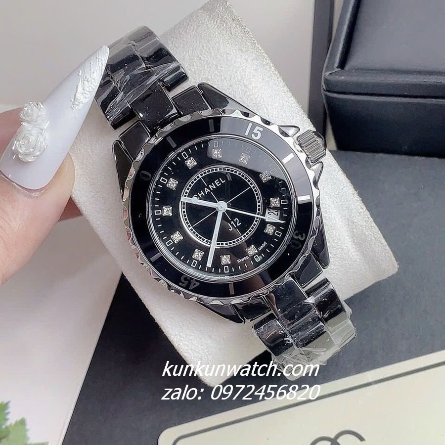 ◼️ Đồng Hồ Nữ Chanel J12 niềng số, đính đá 12 mốc giờ. 3 kim hoạt động