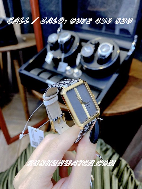 Đồng Hồ Nữ Christian Dior Malice DOND023 với mặt số chữ nhật, nền phối sọc - chỉ hai kim hoạt động - dây da mỏng, mềm mại, ôm tay - mẫu đồng hồ cá tính, thanh lịch cho phái nữ.