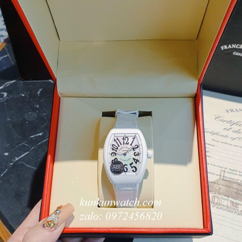Đồng Hồ Nữ Franck Muller V32 - ABF Vỏ Đá 2 Kim - Dây Trắng - 32 x 42mm
