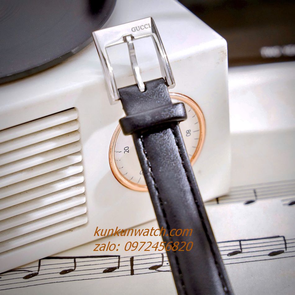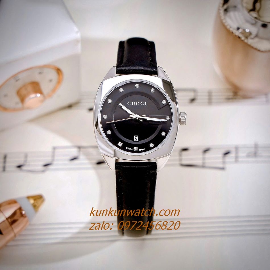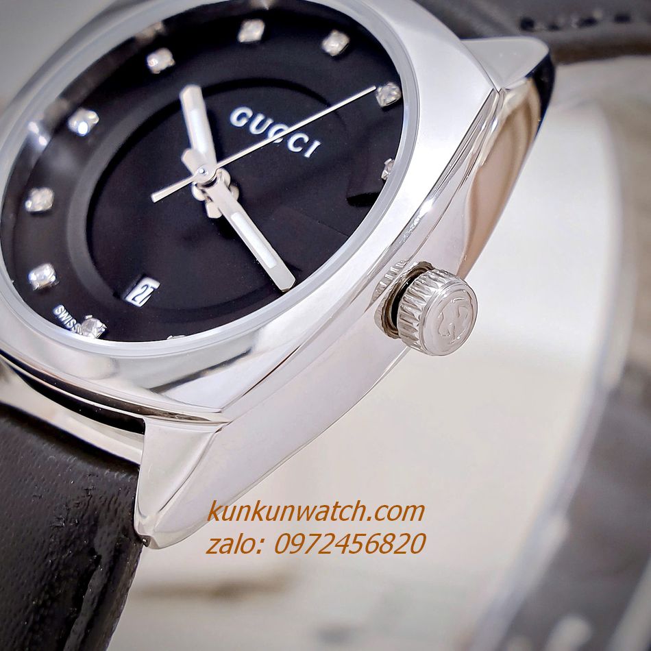 Đồng Hồ Nữ Gucci Diamond Silver Dây Da Đen 29mm