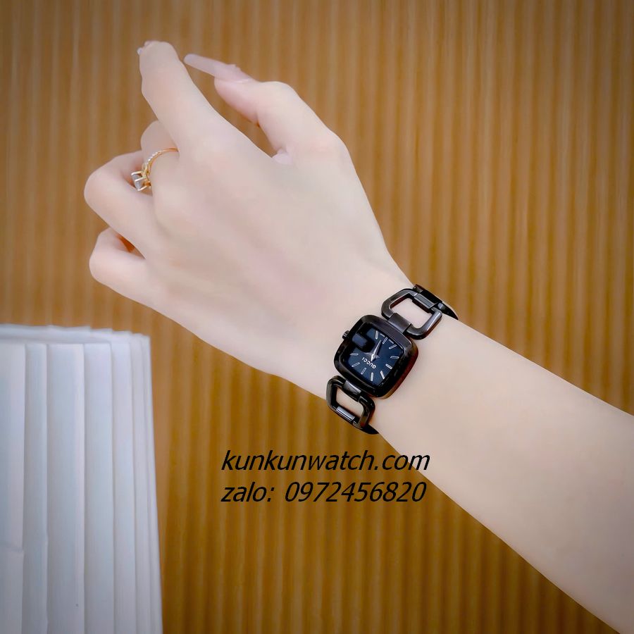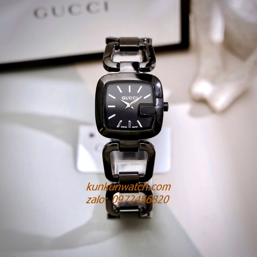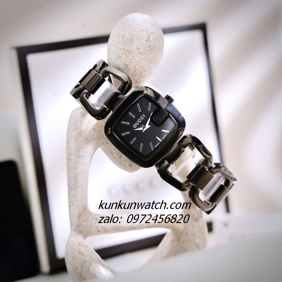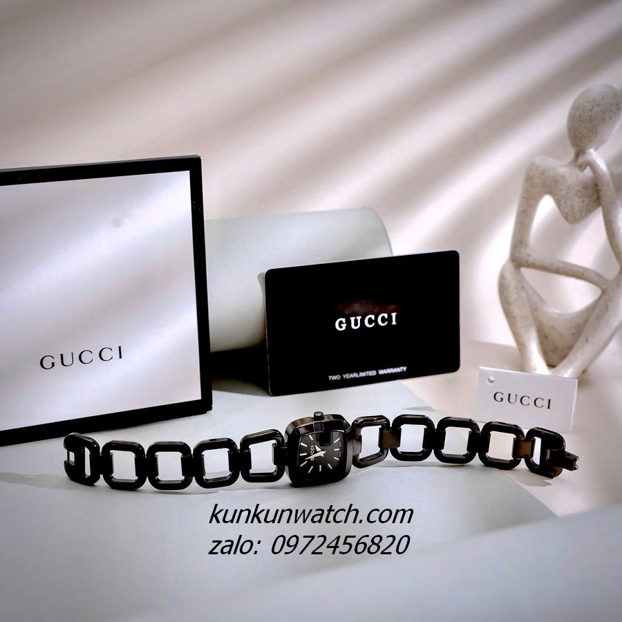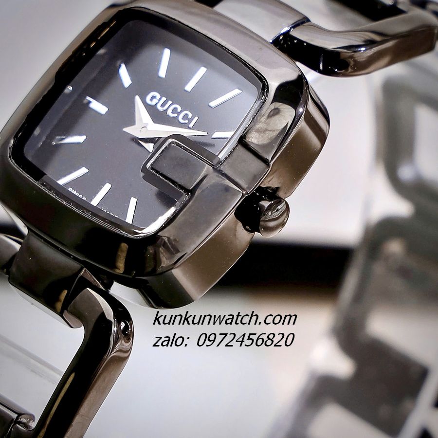 ◼️ Chiếc đồng hồ với kiểu mặt số dáng G-gucci đặc trưng thương hiệu. Kim chỉ, vạch số giờ tông bạc nổi bật trên nền mặt số đen cá tính. Dây đeo dáng lắc tay, mắc xích vuông cực thông thoáng, cá tính